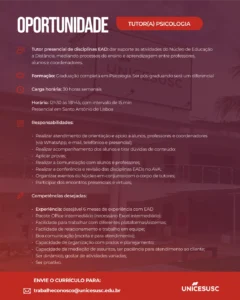Estamos com vaga aberta para TUTOR(A) DE PSICOLOGIA.