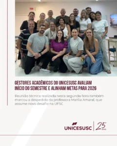 Na última segunda-feira, dia 30 de março, a equipe de gestores no âmbito acadêmico do UNICESUSC realizou mais uma reunião de trabalho, desta feita com o objetivo de avaliar como foi a abertura do semestre letivo 2026.1.