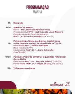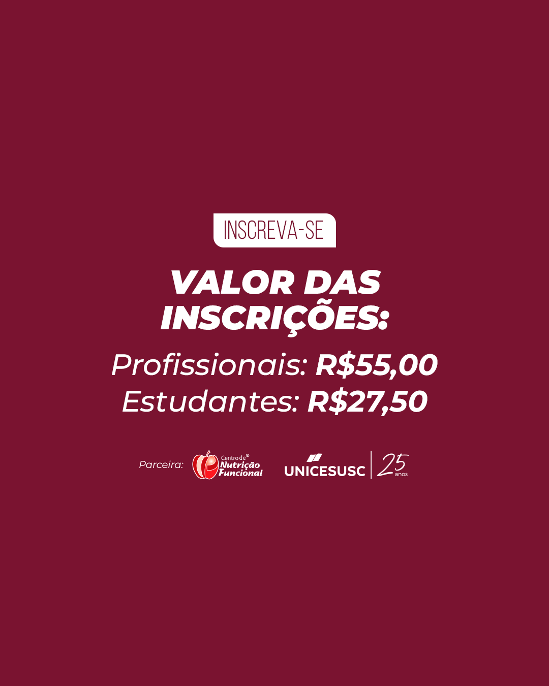 O evento é uma iniciativa do Curso de Nutrição do UNICESUSC, em parceria com o Centro de Nutrição Funcional, e faz parte da programação acadêmica voltada ao fortalecimento da formação profissional e da integração entre ensino, pesquisa e extensão.