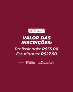 Inscrições: R$55,00 (profissionais) | R$27,50 (estudantes)
