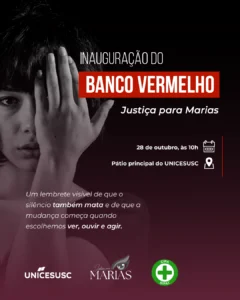 O Banco Vermelho representa o compromisso da UNICESUSC com o feminicídio zero e com a construção de uma cultura de respeito, escuta e não violência.