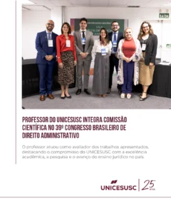 O professor integrou a Comissão de Comunicados Científicos e atuou como avaliador dos trabalhos acadêmicos apresentados, representando o UNICESUSC em um dos mais importantes eventos jurídicos do país. A participação reforça o reconhecimento nacional da qualidade acadêmica e o comprometimento do UNICESUSC com a pesquisa, a divulgação e a excelência no ensino jurídico.