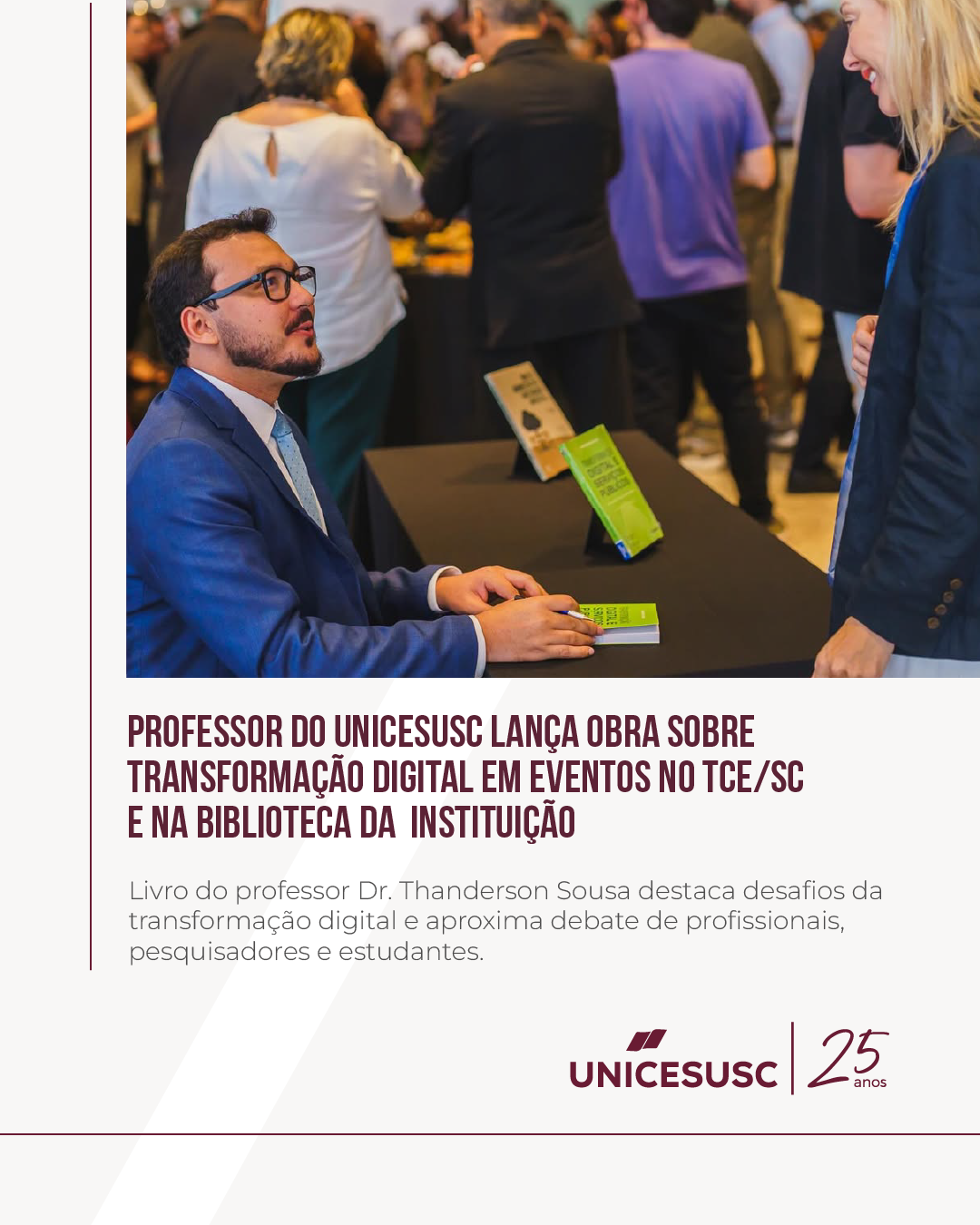 O professor do Curso de Direito do UNICESUSC, Dr. Thanderson Sousa, realizou dois importantes lançamentos de sua nova obra, “Transformação digital e serviços públicos: uma crítica além do hype tecnosolucionista”, publicada pela Editora Fórum.