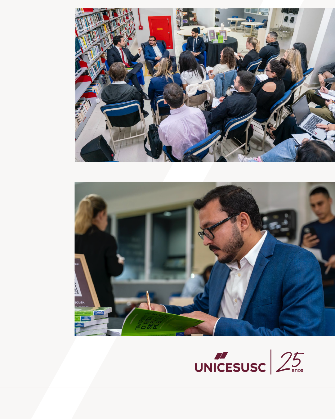 No dia 18 de novembro, foi a vez da nossa comunidade acadêmica prestigiar o autor em um segundo encontro, realizado na Biblioteca do UNICESUSC promovido em parceria com o NUPAP (Núcleo de Produção Acadêmica e Publicação). Alunos participaram de um momento de diálogo direto com o professor, aprofundando as reflexões da obra e discutindo os caminhos da administração pública em um cenário de crescente digitalização.