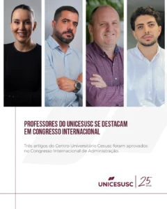 Essas conquistas reforçam o papel do Centro Universitário Cesusc – UNICESUSC como instituição de excelência na formação de profissionais inovadores, críticos e comprometidos com a sustentabilidade e o avanço da ciência da Administração.