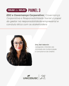 O encontro reunirá grandes nomes do cenário jurídico e corporativo, incluindo especialistas da OAB/SC e da Academia de Letras Jurídicas (ACALEJ), que irão compartilhar experiências e reflexões sobre governança, cultura organizacional e práticas preventivas no ambiente profissional.