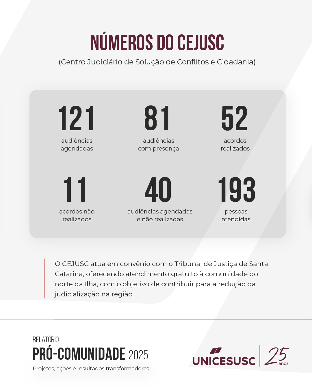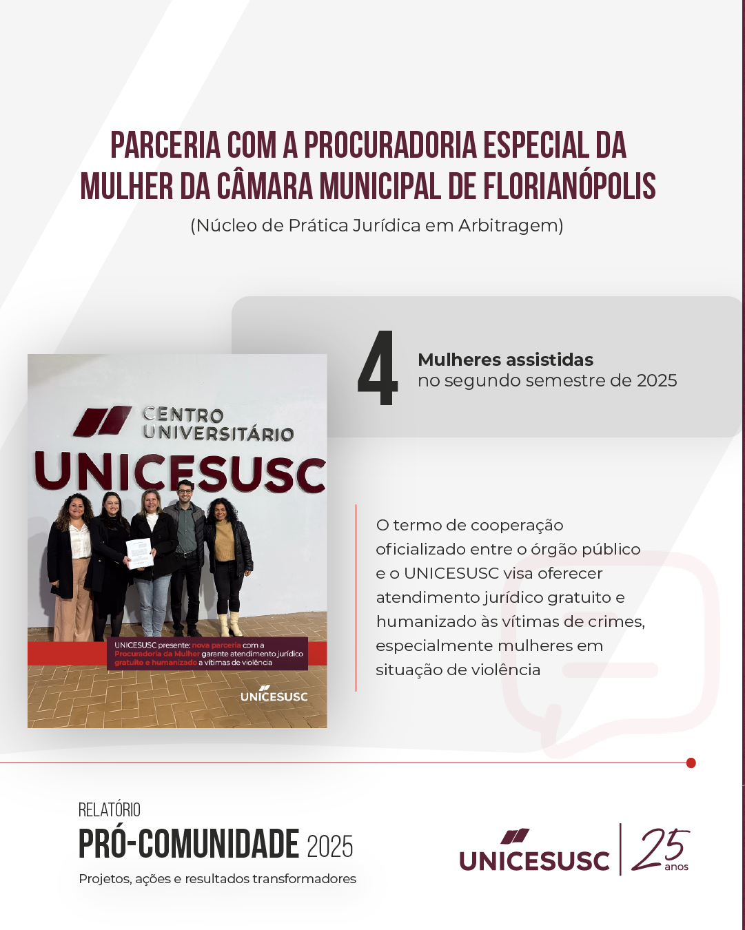 Tudo isso acontece dentro do Pró-Comunidade, cujo relatório completo das atividades realizadas em 2025 está disponível no site do UNICESUSC. Acesse aqui.