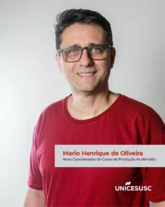 Professor Mario assume a Coordenação com grande entusiasmo e comenta que “este é um momento empolgante, especialmente considerando a nossa matriz curricular, recentemente reformulada em 2025/1, implementada pela coordenação anterior, e que nos coloca sintonizados com as tendências mais atuais nas áreas de animação e audiovisual.