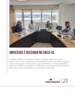 O objetivo do encontro foi divulgar o lançamento do novo Curso de Graduação a distância do UNICESUSC, que busca atender a demanda por profissionais preparados para atuar no campo dos negócios imobiliários.