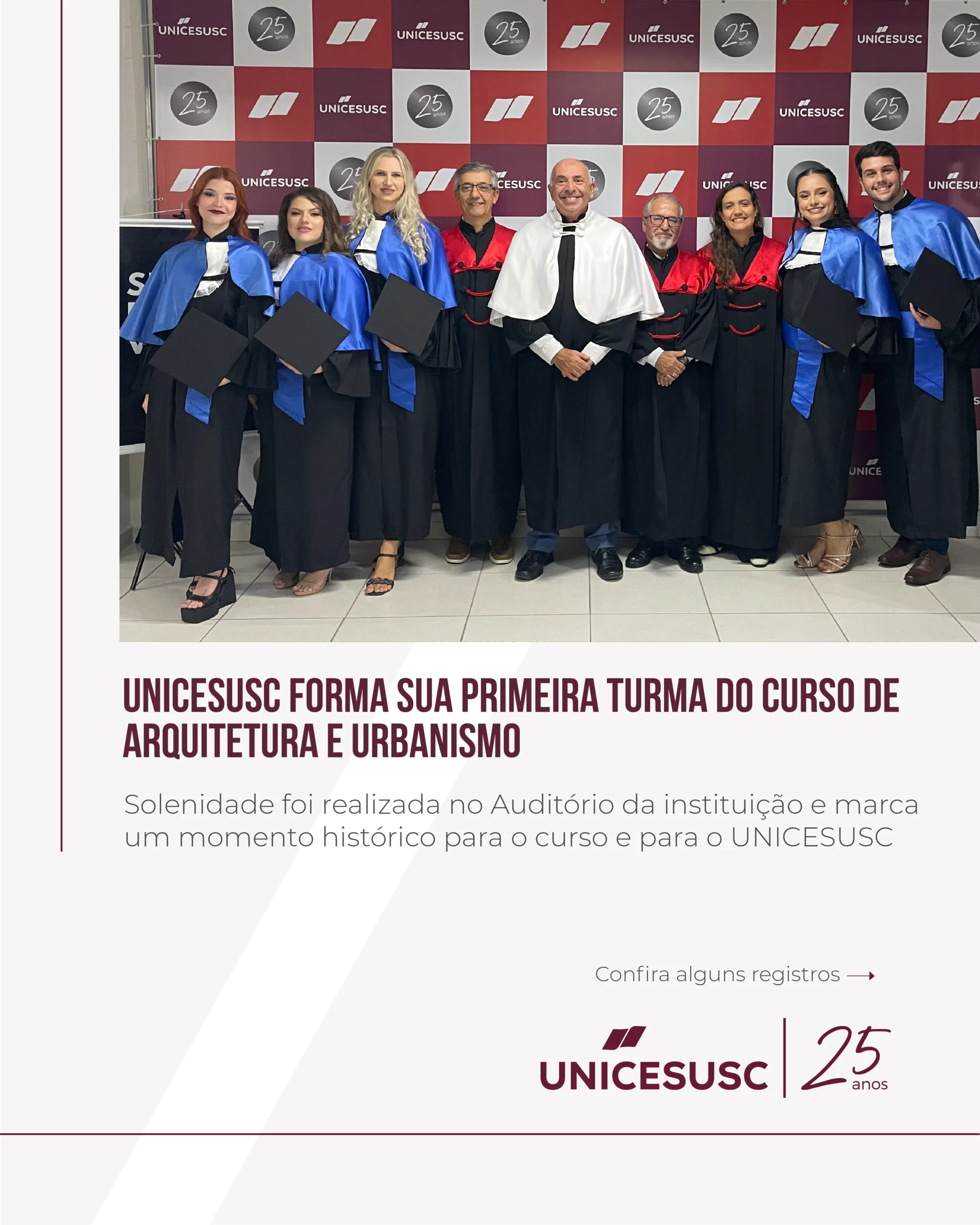 Com muito orgulho e felicidade, celebramos na última sexta-feira, 27 de março, a formatura da primeira turma do curso de Arquitetura e Urbanismo do UNICESUSC.