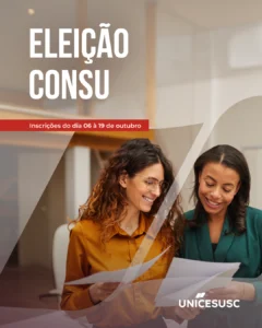 O UNICESUSC dá início ao processo eleitoral para a escolha dos representantes do Corpo Docente, Corpo Discente e Técnico-Administrativo no Conselho Universitário (CONSU). O pleito definirá os novos membros titulares e suplentes, que terão a importante missão de representar o segmento nas decisões institucionais, fortalecendo a gestão participativa e o diálogo com toda a comunidade acadêmica.