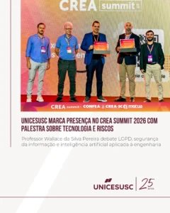 A participação no CREA Summit 2026 reforça o compromisso do UNICESUSC com a formação conectada às demandas do mercado e com os debates que impactam diretamente o futuro das profissões.