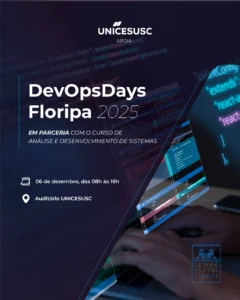 No dia 06 de dezembro de 2025, das 08h às 18h, o auditório do UNICESUSC abre suas portas para receber o DevOpsDays Florianópolis — uma conferência mundialmente reconhecida que conecta desenvolvimento de software, operações de TI e a cultura colaborativa que impulsiona as organizações mais inovadoras do planeta.